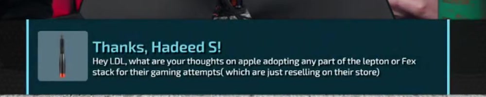 Hey LDL, what are your thoughts on apple adopting any part of the lepton or Fex