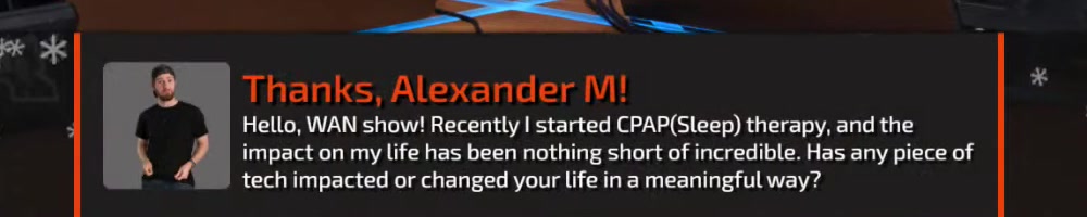 Hello, WAN show! Recently I started CPAP(Sleep) therapy, and the