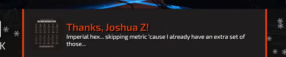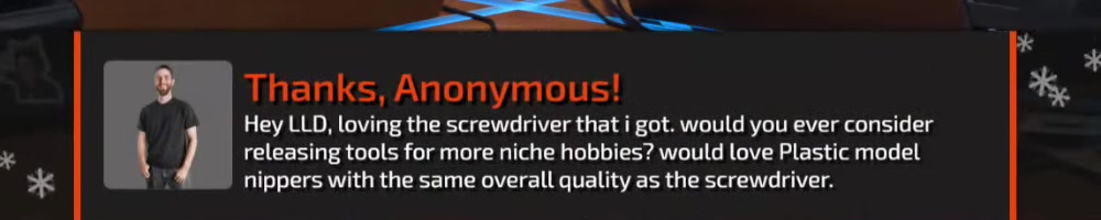 Do you have any updates on the LTT precision screwdriver? | Timestamp |  |