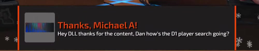 Hey DLL thanks for the content, Dan how's the D1 player search going?