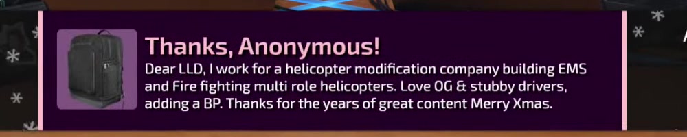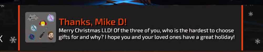 Merry Christmas LLD. I hope Santa brings everything you want. | Timestamp |  |