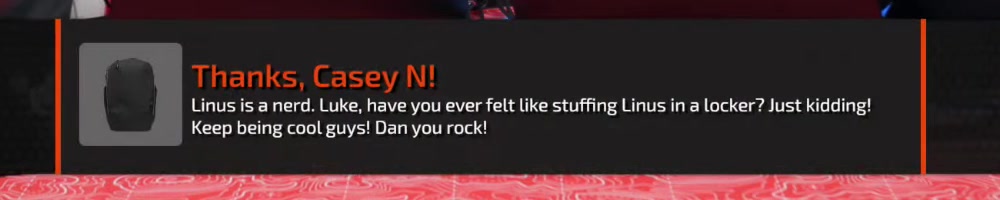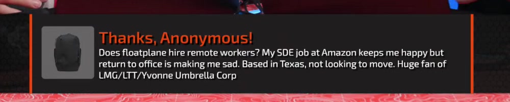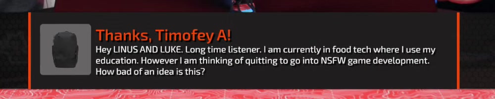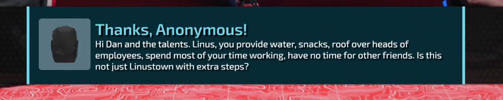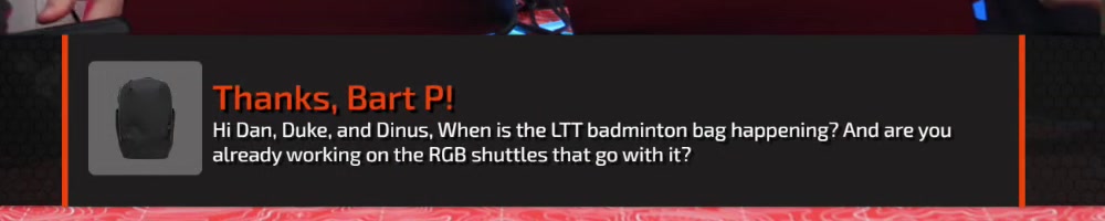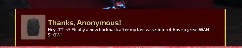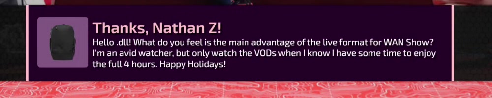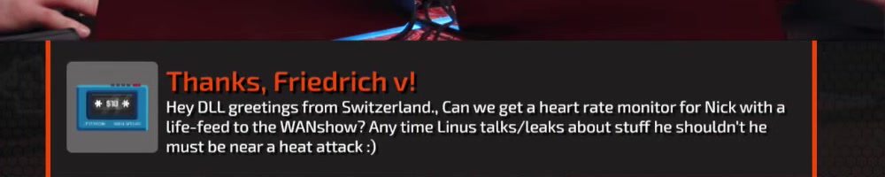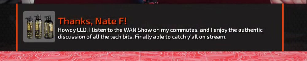 Just wanted to say you guys are the best and have been loving the WAN Show for