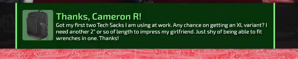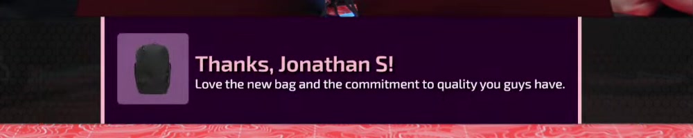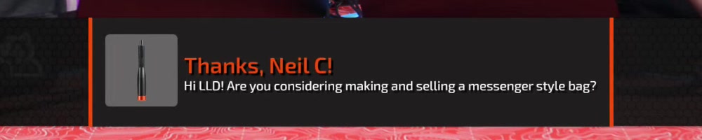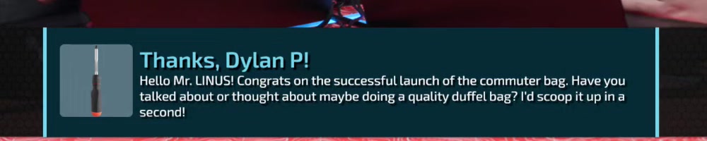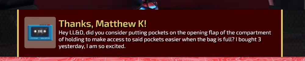 Love the new bag and the commitment to quality you guys have. | Timestamp |  |