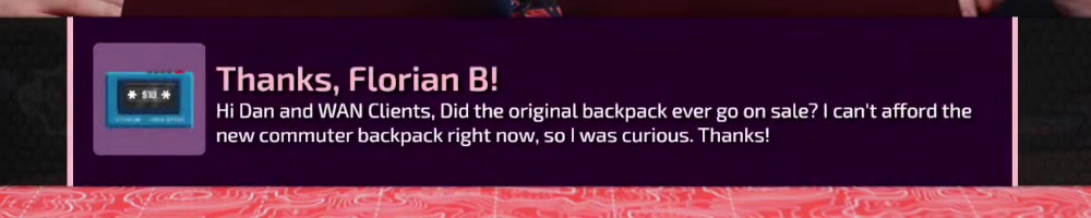 Perfect backpack for PAX East next year! | Timestamp |  |