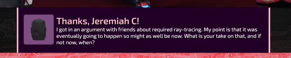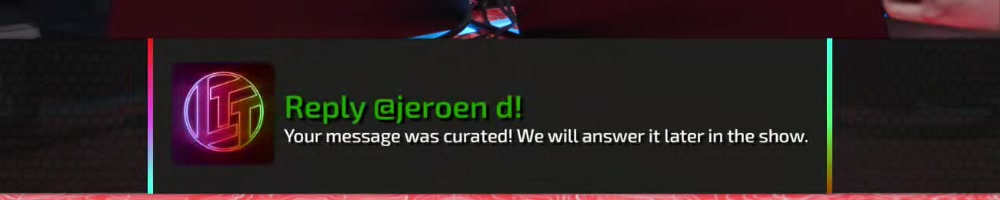 Your message was curated! We will answer it later in the show. | Timestamp |  |