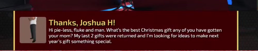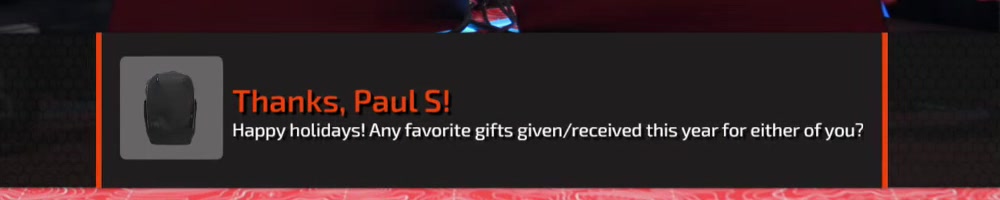 Happy holidays! Any favorite gifts given/received this year for either of you? | Timestamp |  |