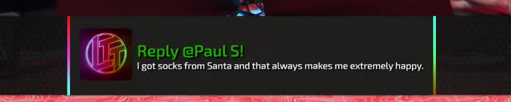 I got socks from Santa and that always makes me extremely happy. | Timestamp |  |