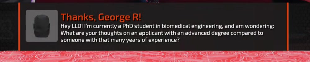 Hey LLD! I'm currently a PhD student in biomedical engineering, and am wondering: