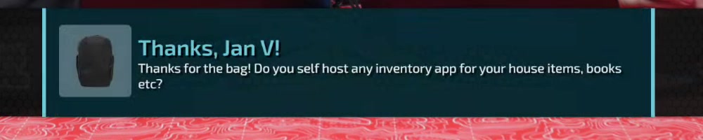 Thanks for the bag! Do you self host any inventory app for your house items, books