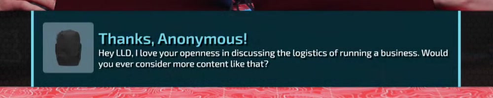 Hey LLD, I love your openness in discussing the logistics of running a business. Would