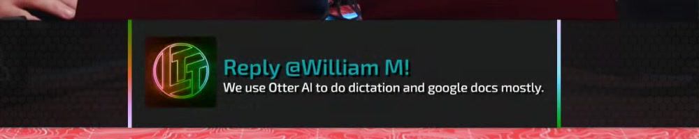 We use Otter Al to do dictation and google docs mostly. | Timestamp |  |