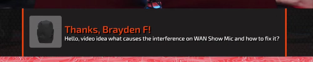 Hello, video idea what causes the interference on WAN Show Mic and how to fix it? | Timestamp |  |