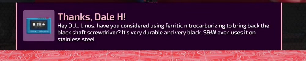Hey DLL. Linus, have you considered using ferritic nitrocarburizing to bring back the