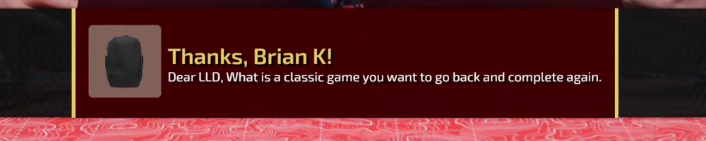 Dear LLD, What is a classic game you want to go back and complete again. | Timestamp |  |