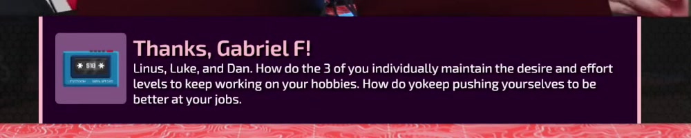 Hello Linus, Luke, Dan! Rapid fire question: What is one product/technology you are