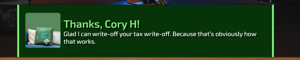 I did my part in the Tax Write-Off. | Timestamp |  |