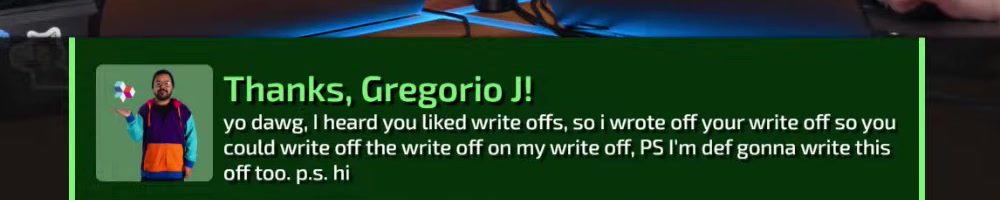 This message is a tax write-off. Loving the cable management solution! | Timestamp |  |