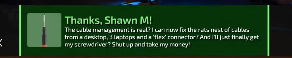 I came for a write-off shirt. And ended up with a screwdriver. | Timestamp |  |