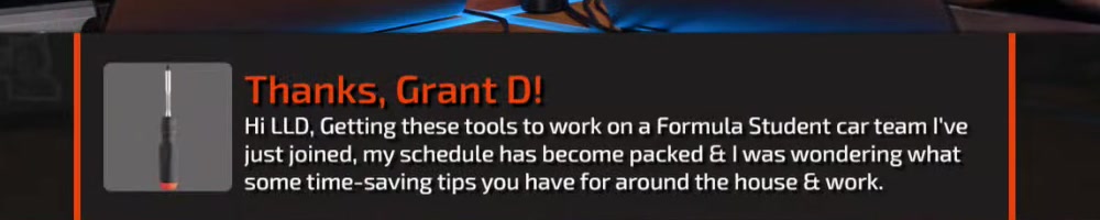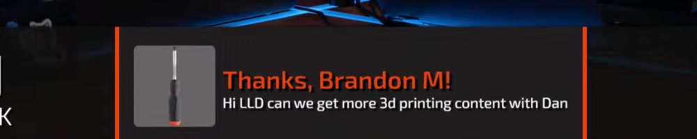 Hi LLD can we get more 3d printing content with Dan | Timestamp |  |