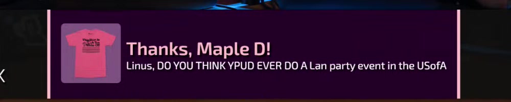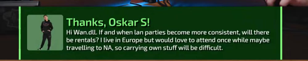 Linus, DO YOU THINK YPUD EVER DO A Lan party event in the USofA | Timestamp |  |