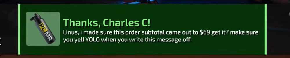 Linus, i made sure this order subtotal came out to $69 get it? make sure