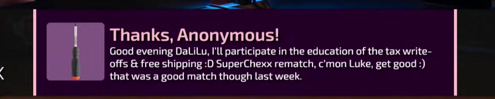 offs & free shipping :D SuperChexx rematch, c'mon Luke, get good :)