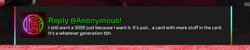 I still want a 5090 just because I want it. It's just... a card with more stuff in the card.