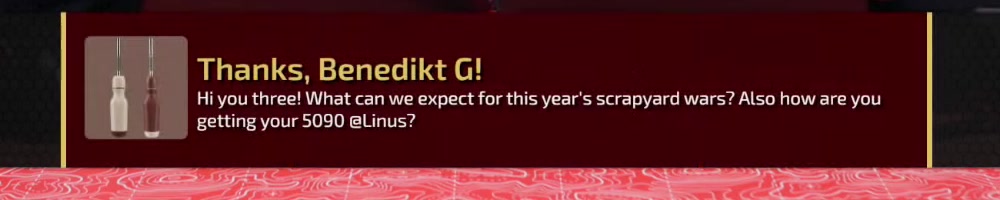 Hi you three! What can we expect for this year's scrapyard wars? Also how are you