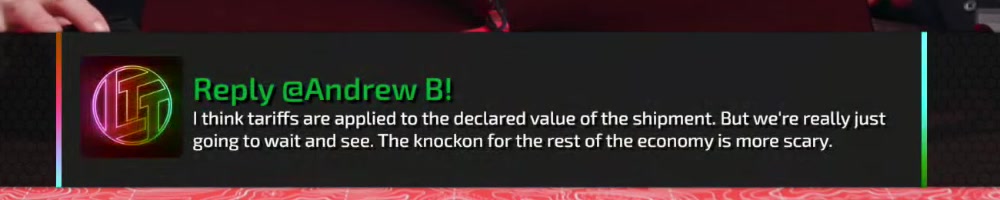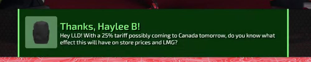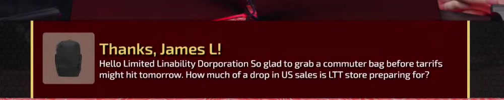 might hit tomorrow. How much of a drop in US sales is LTT store preparing for? | Timestamp |  |