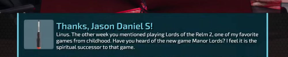Linus. The other week you mentioned playing Lords of the Relm 2, one of my favorite