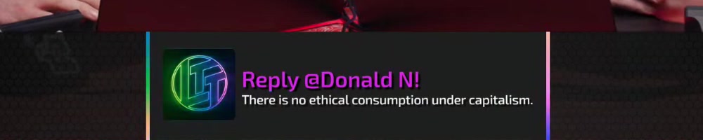 There is no ethical consumption under capitalism. | Timestamp |  |