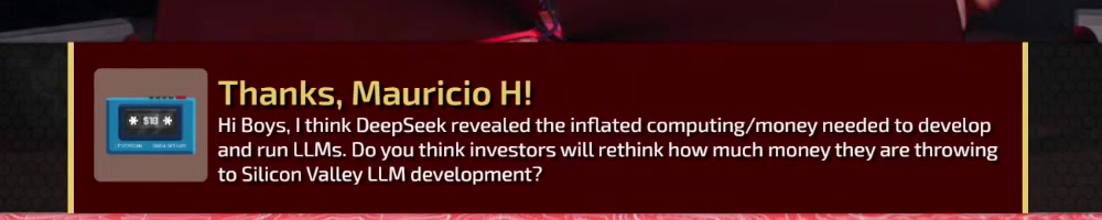Hi Boys, I think DeepSeek revealed the inflated computing/money needed to develop
