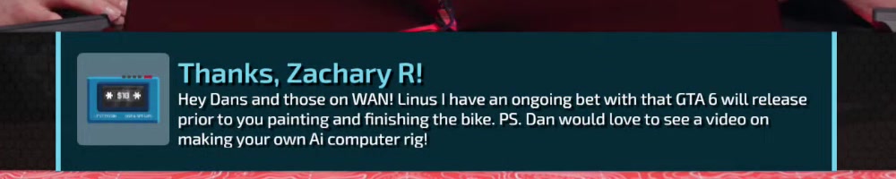 Hey Dans and those on WAN! Linus I have an ongoing bet with that GTA 6 will release