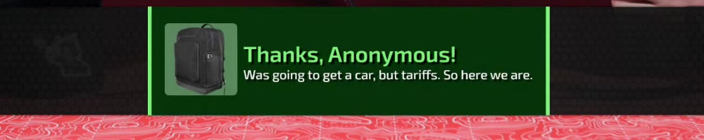 Was going to get a car, but tariffs. So here we are. | Timestamp |  |