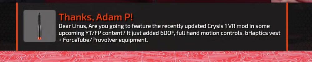 Dear Linus, Are you going to feature the recently updated Crysis 1 VR mod in some