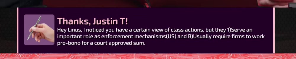 Hey Linus, I noticed you have a certain view of class actions, but they 1)Serve an