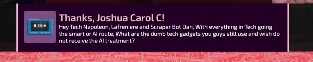 years. What are some pro/industry features you'd want in consumer tech this year | Timestamp |  |