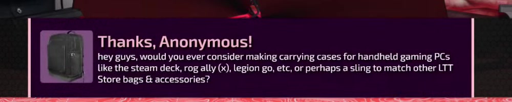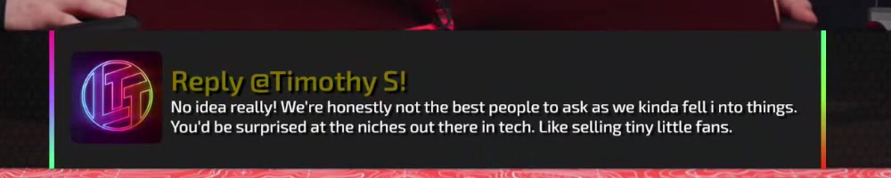 some pants to go with it? Would love to have a full LTT office appropriate set! | Timestamp |  |