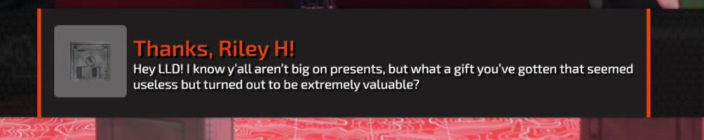 Hey LLD! I know y'all aren't big on presents, but what a gift you've gotten that seemed