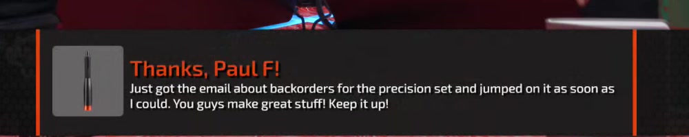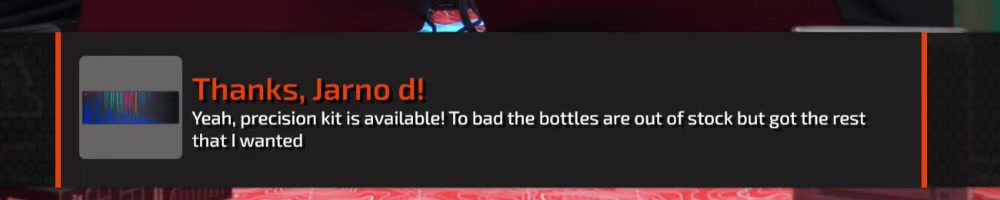 Glad you finally had the precision kit back on order, can't wait HELL YES!!! | Timestamp |  |