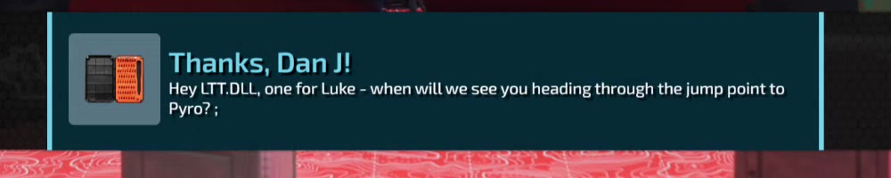 Hey LTT.DLL, one for Luke - when will we see you heading through the jump point to