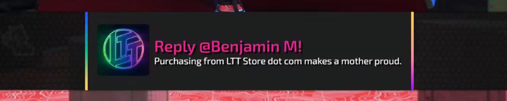 Purchasing from LTT Store dot com makes a mother proud. | Timestamp |  |