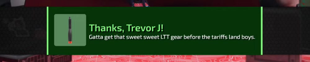Gatta get that sweet sweet LTT gear before the tariffs land boys. | Timestamp |  |