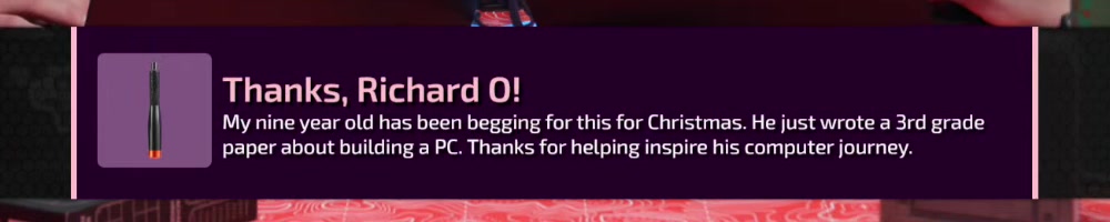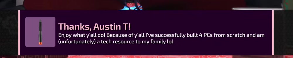 Enjoy what y'all do! Because of y'all I've successfully built 4 PCs from scratch and am