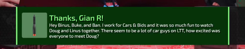 Doug and Linus together. There seem to be a lot of car guys on LTT, how excited was