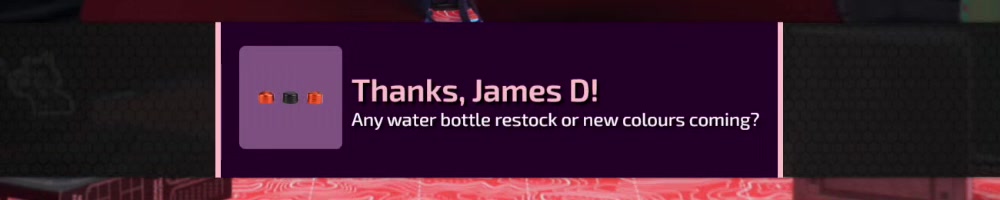Any water bottle restock or new colours coming? | Timestamp |  |