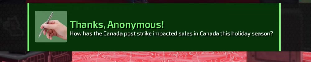 How has the Canada post strike impacted sales in Canada this holiday season? | Timestamp |  |