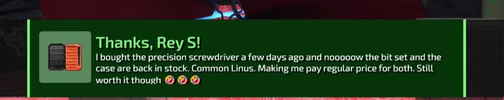Excited to buy my 7TH LTT screwdriver total (and first precision screwdriver)! | Timestamp |  |