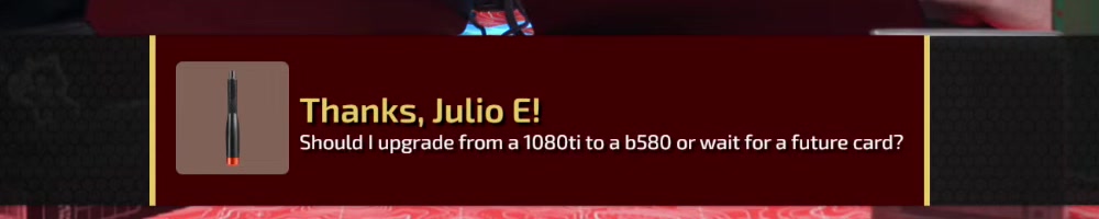 Your message was curated! We will answer it later in the show. | Timestamp |  |
