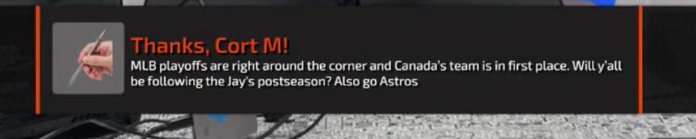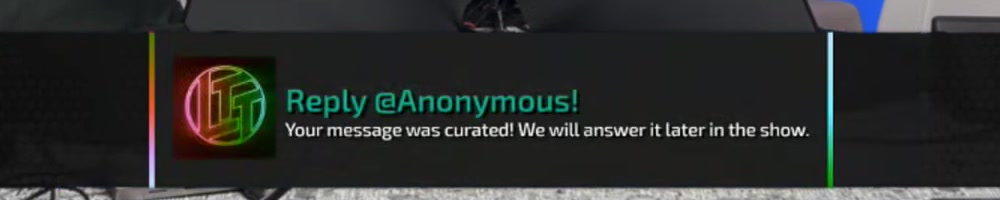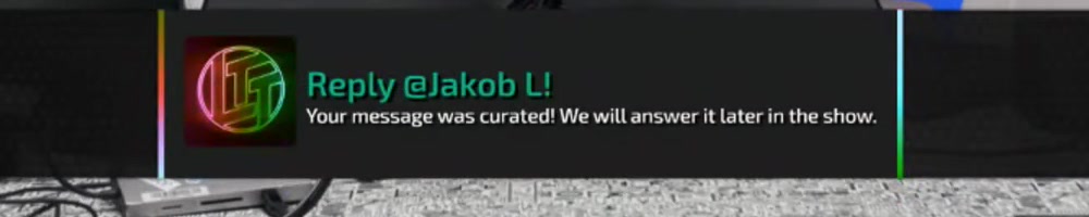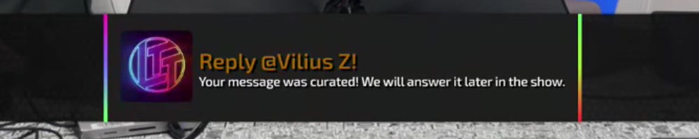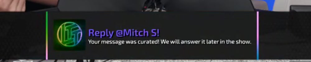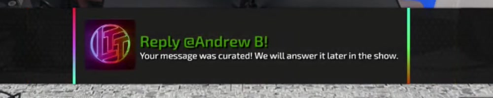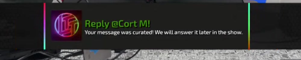 Your message was curated! We will answer it later in the show. | Timestamp |  |